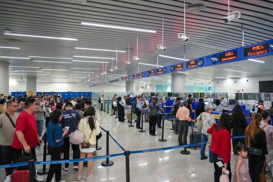 今年国庆中秋假期(10月1日0时—8日12时),经广州出入境边防检查总站下辖口岸出入境人员超37.4万人次,较去年同期增长约12%。其中,白云国际机场口岸出入境人员达35万人次,日均客流突破4.6万人次。