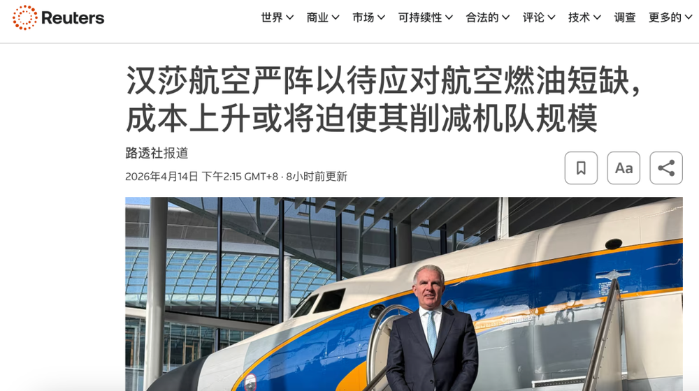 汉莎CEO在4月14日公开表示,煤油供应短缺和高价可能贯穿全年,公司已经准备把运力削减2.5%到5%,必要时甚至可能提前停飞20到40架老旧飞机。