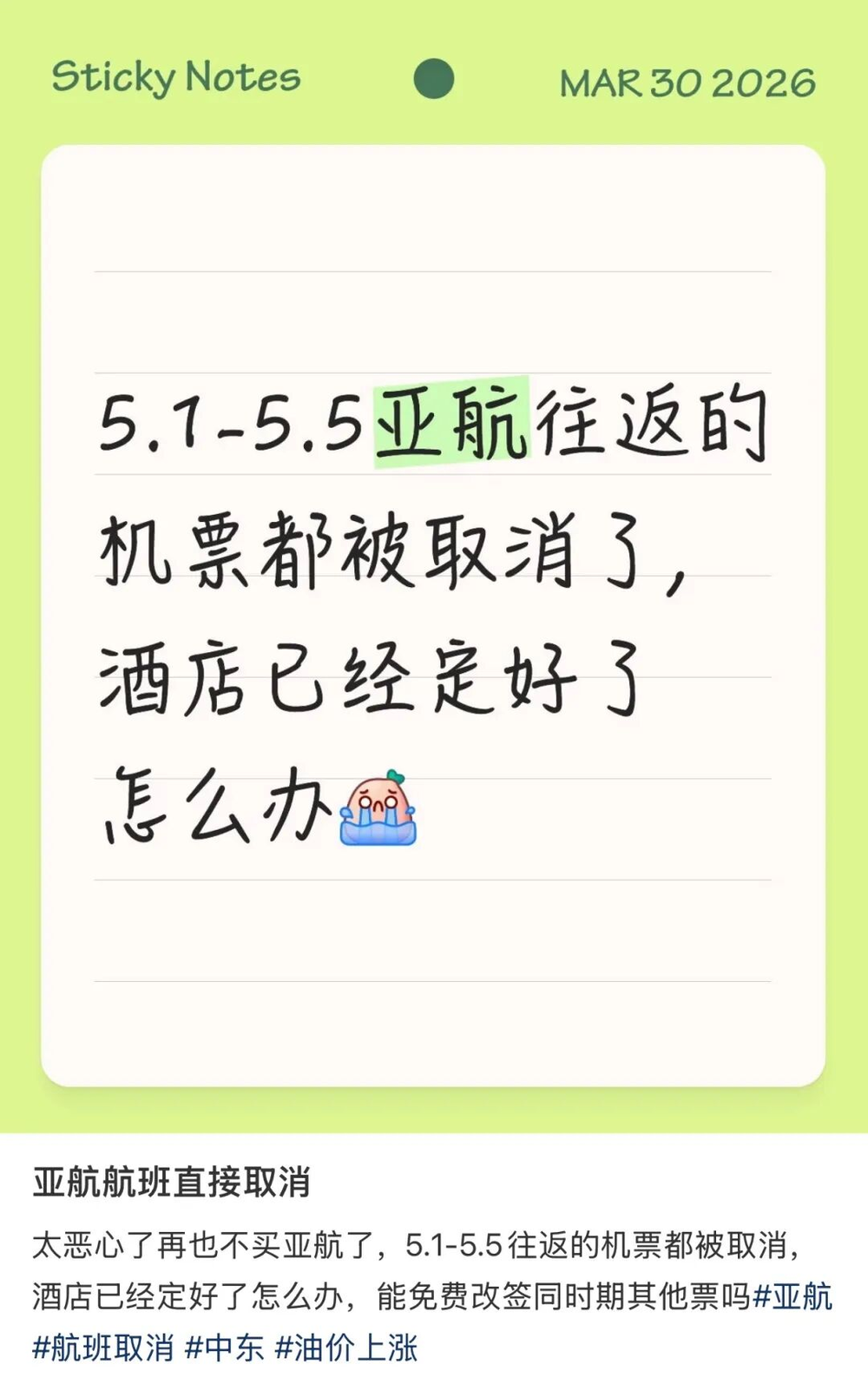 虽然我理解旅客的损失是真实的。酒店、签证、年假、后续交通,全都会被连带影响。哪怕航空公司可以全额退票,并不等于旅客没有成本。这个矛盾客观存在,而且很难靠一句“理解万岁”来解决。