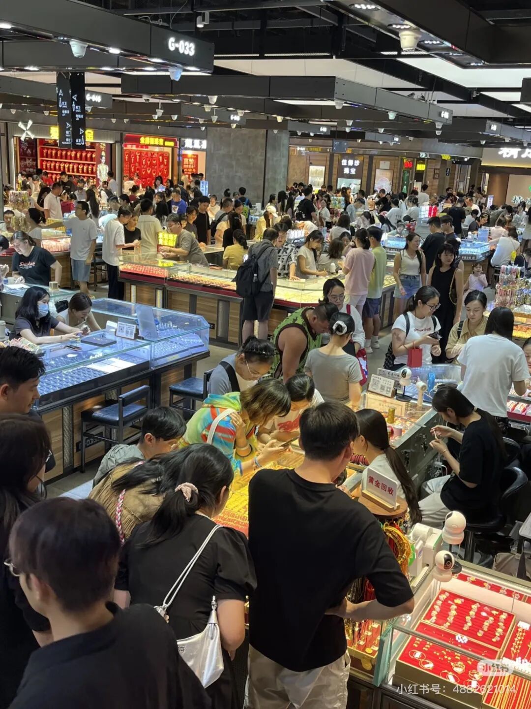 国庆中秋假期,记者在水贝市场看到,黄金市场消费火热,多个商圈客流量络绎不绝。其中,涉及婚庆产品的店铺生意最是红火。