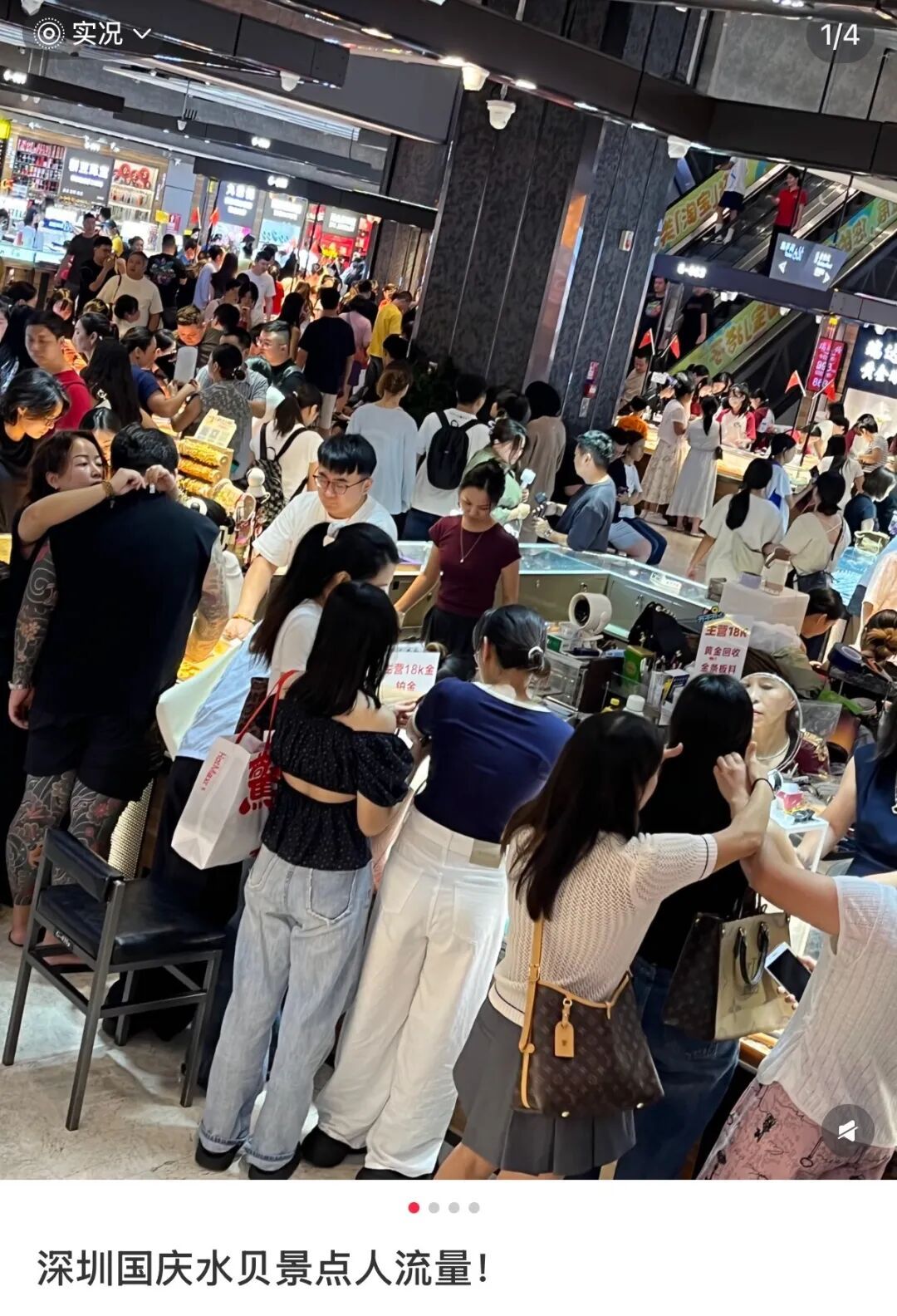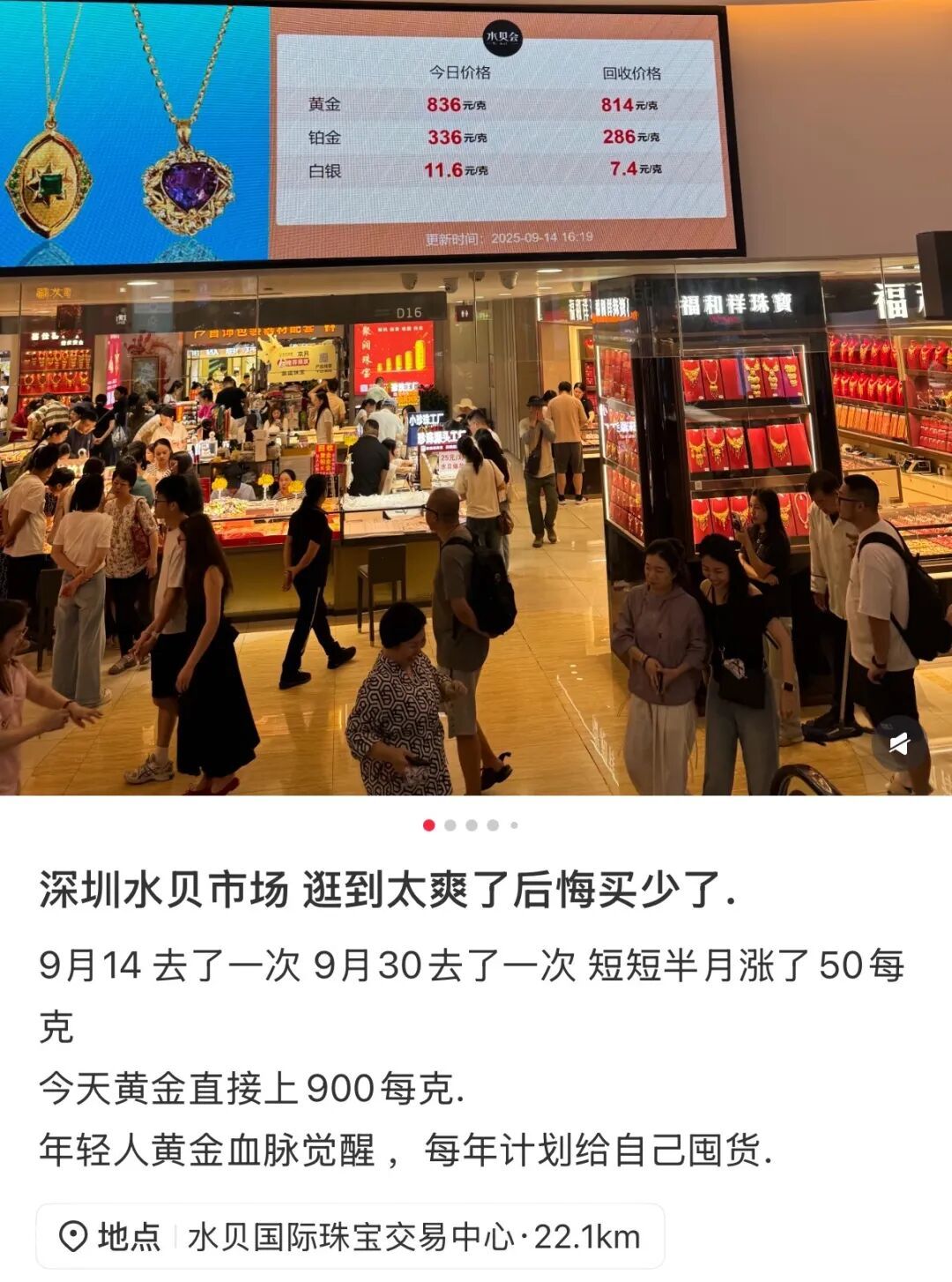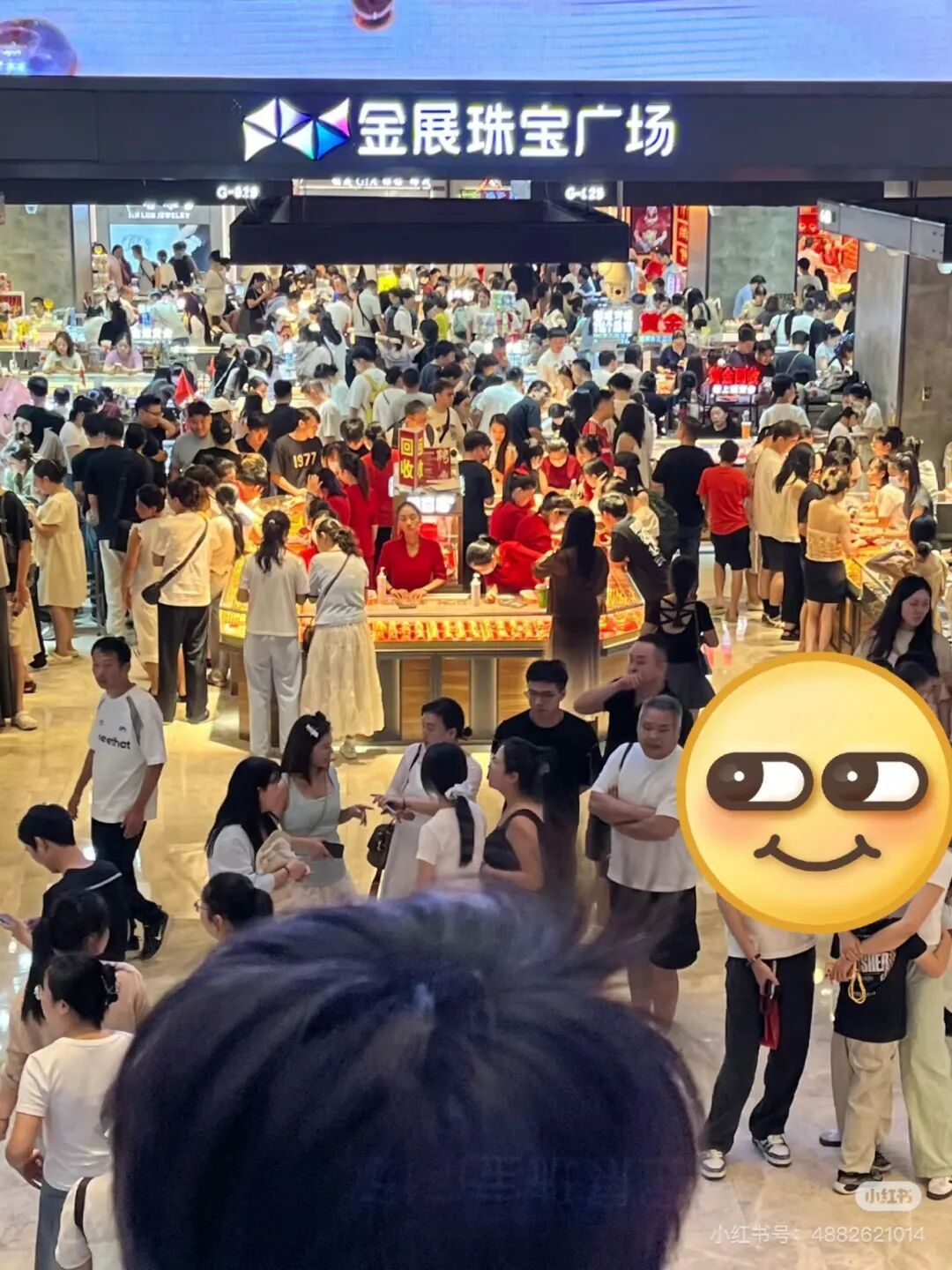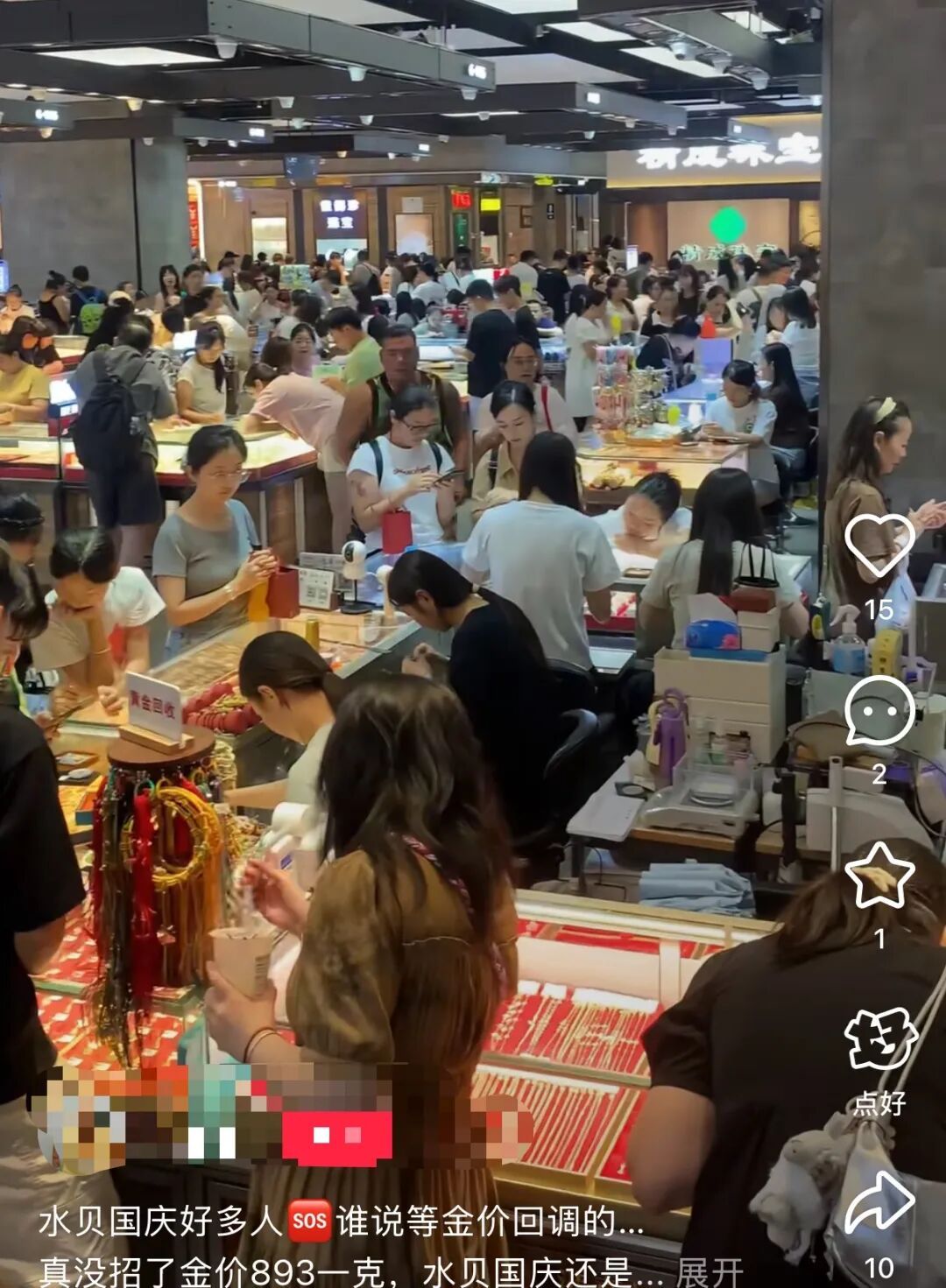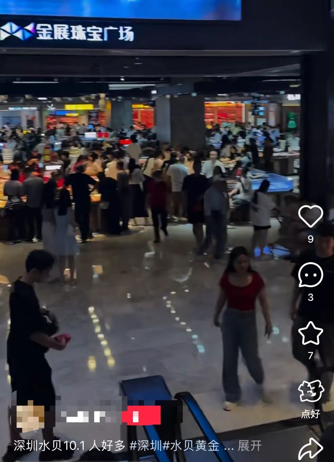 广东深圳水贝黄金商户 吴倩:国庆期间,人流量至少翻两倍。我们这里围得水泄不通,基本上没有停过。