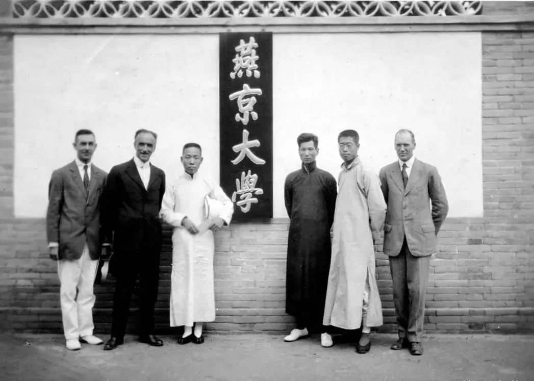 ▲1916年1月31日,燕京大学成立,美国传教士司徒雷登(左二)担任校长