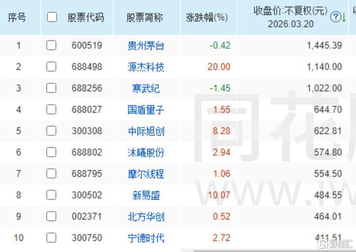 截至目前,源杰科技股价反超寒武纪,仅次于茅台,跃居A股市场第二高价股。