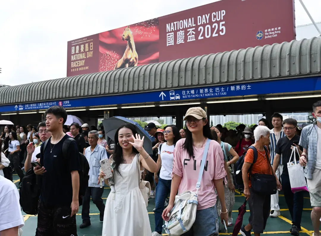 适逢内地十一黄金周,沙田马场布满国庆主题装饰,洋溢着浓厚的节庆氛围,场内人潮涌动,气氛热烈。“国庆赛马日”作为香港独具特色的文旅名片,已成为海内外游客感受香港多元文化魅力的热门之选,赛马旅游更成为假期消费新亮点。